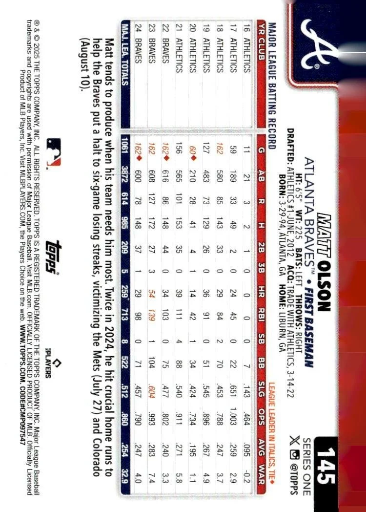This is a nice example of a 2025 Topps #145 Matt Olson