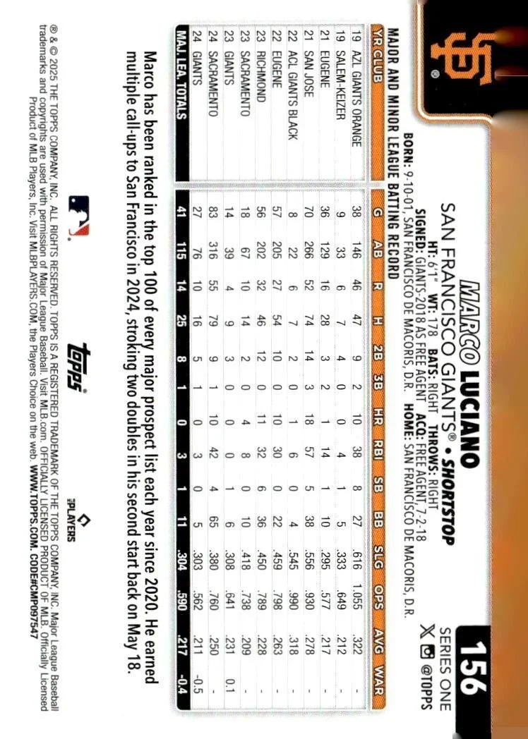 This is a nice example of a 2025 Topps #156 Marco Luciano