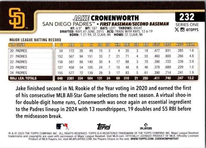 This is a nice example of a 2025 Topps #232 Jake Cronenworth