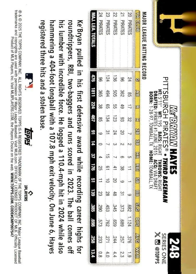 This is a nice example of a 2025 Topps #248 Ke’Bryan Hayes