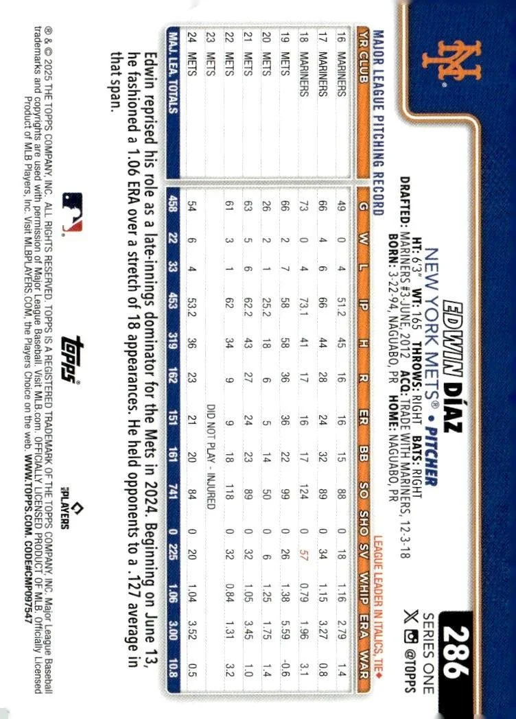 This is a nice example of a 2025 Topps #286 Edwin Díaz