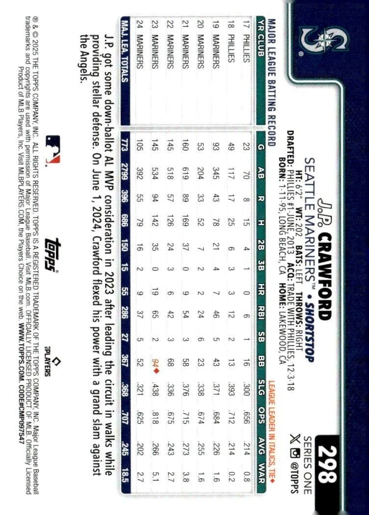 This is a nice example of a 2025 Topps #298 J.P. Crawford