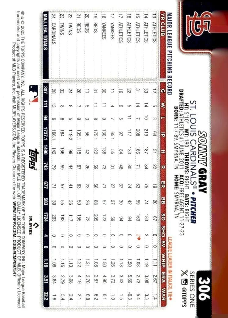 In 2025 Sonny Gray played for the St. Louis Cardinals.