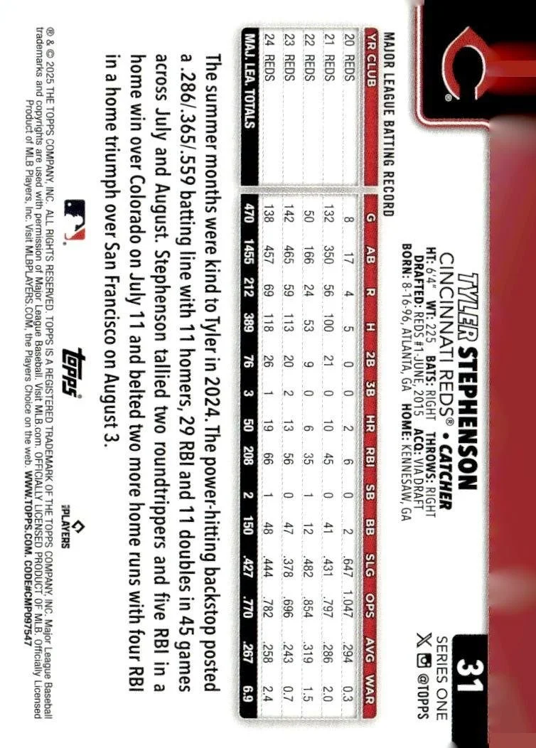 This is a nice example of a 2025 Topps #31 Tyler Stephenson