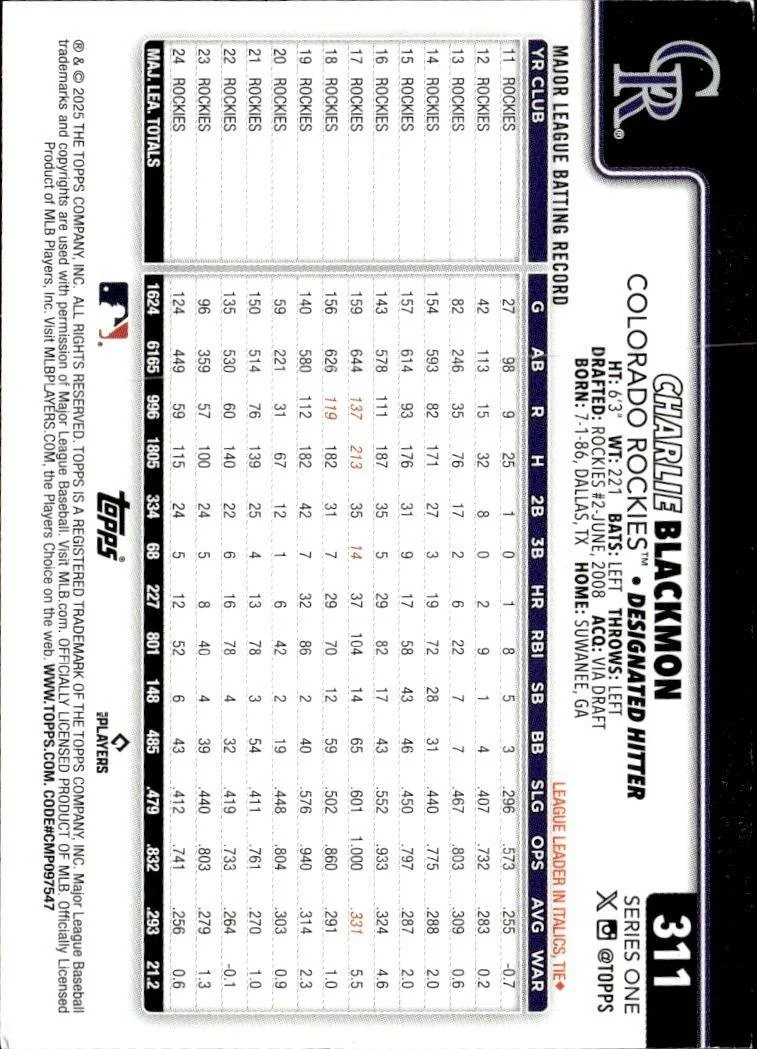 This is a nice example of a 2025 Topps #311 Charlie Blackmon