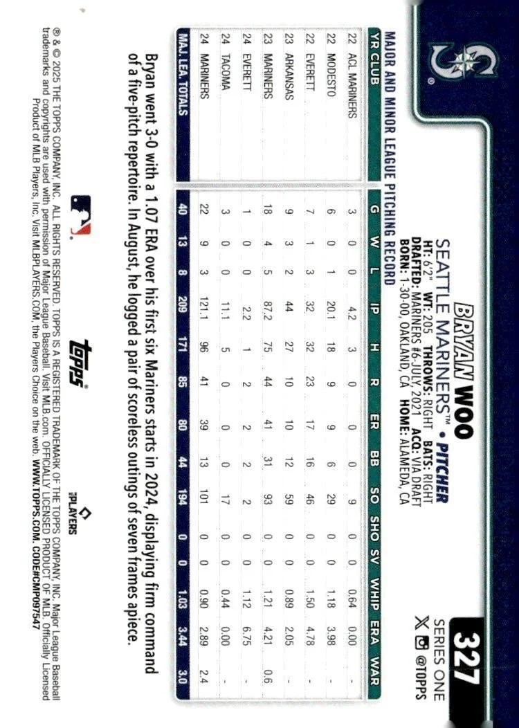 This is a nice example of a 2025 Topps #327 Bryan Woo