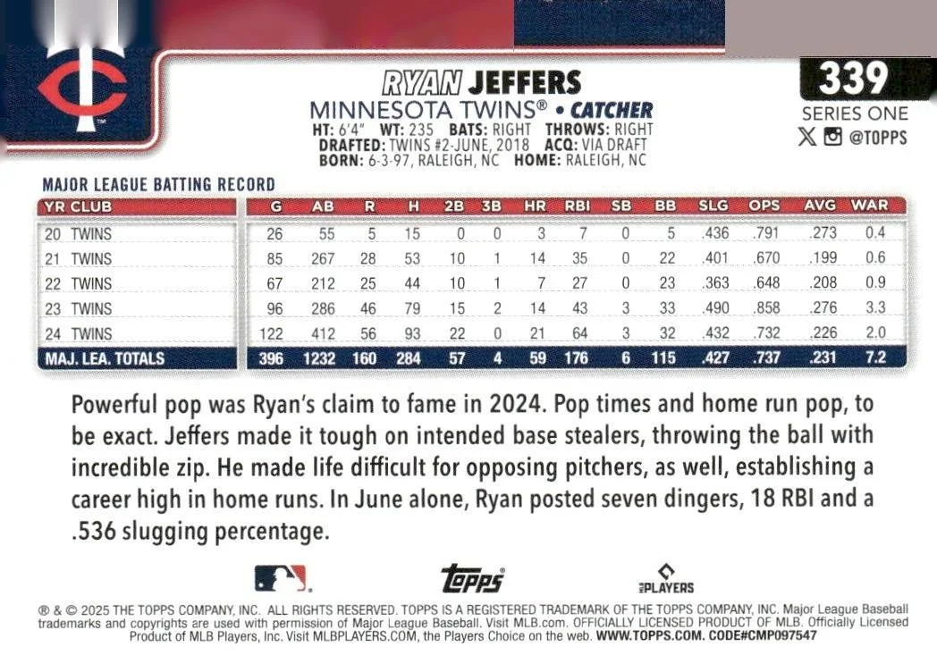 This is a nice example of a 2025 Topps #339 Ryan Jeffers