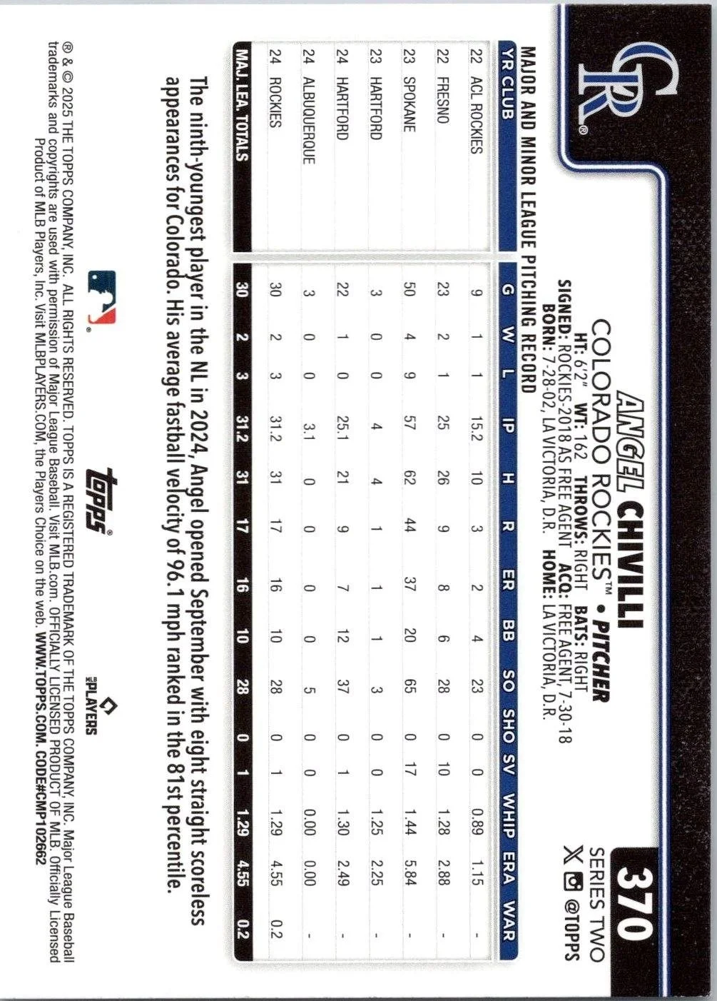 This is a nice example of a 2025 Topps #370 Angel Chivilli