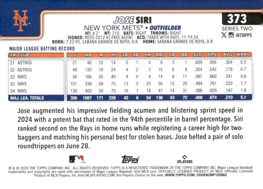 This is a nice example of a 2025 Topps #373 Jose Siri