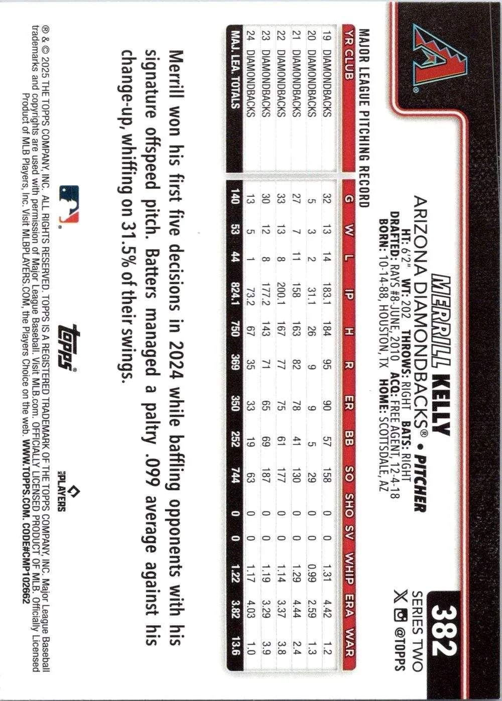 In 2025 Merrill Kelly played for the Arizona Diamondbacks.