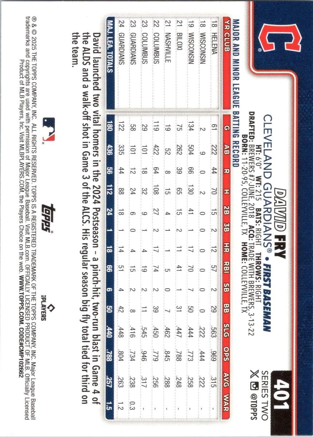 In 2025 David Fry played for the Cleveland Guardians.
