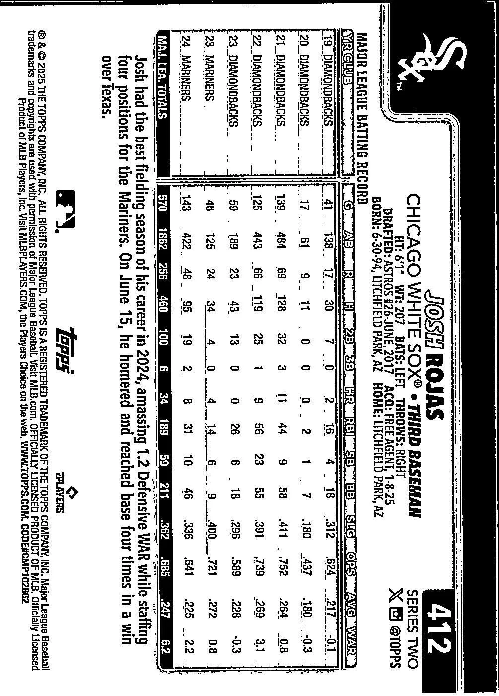 This is a nice example of a 2025 Topps #412 Josh Rojas