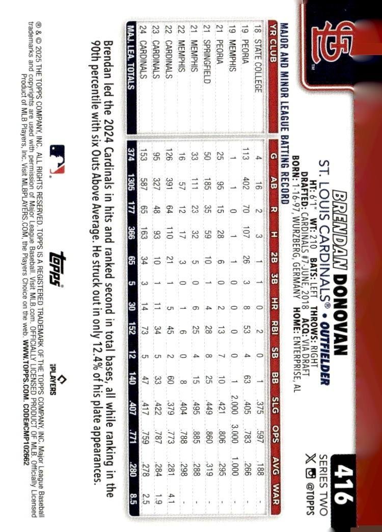 This is a nice example of a 2025 Topps #416 Brendan Donovan