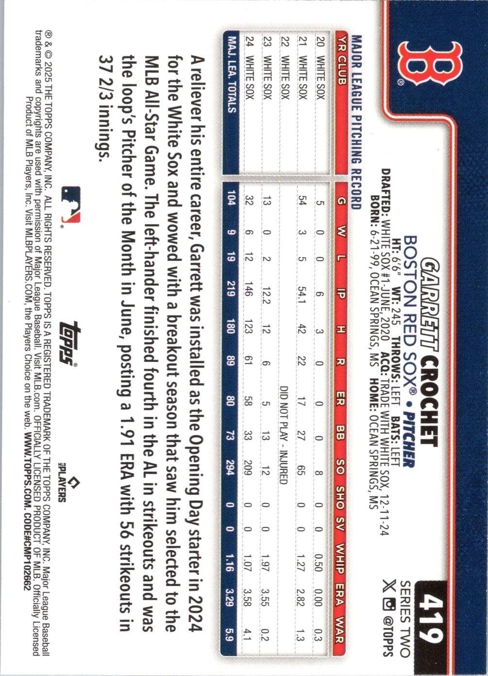This is a nice example of a 2025 Topps #419 Garrett Crochet