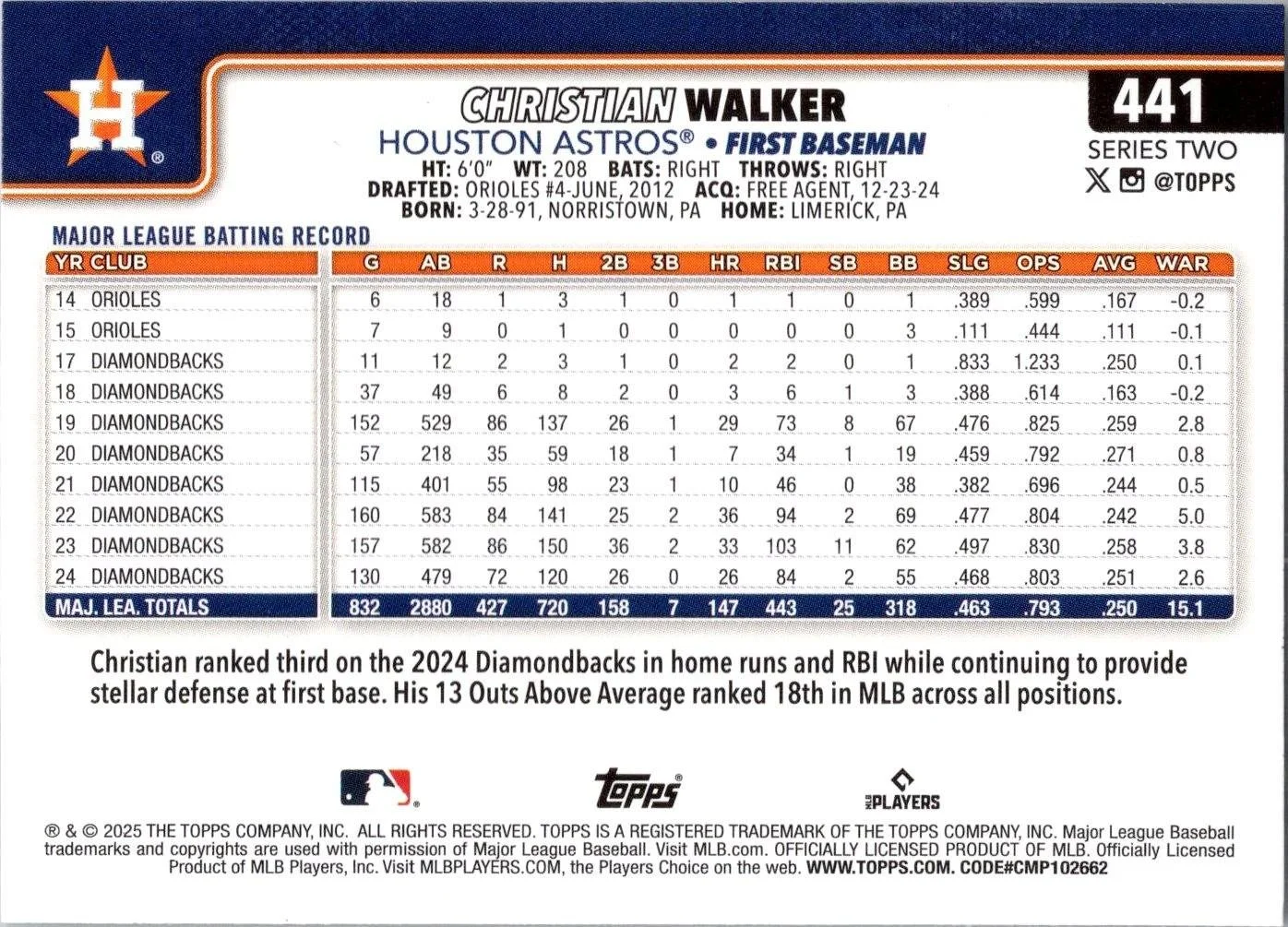 This is a nice example of a 2025 Topps #441 Christian Walker