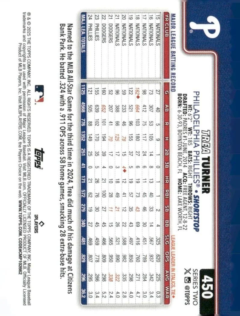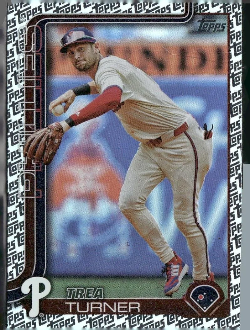 This is a nice example of a 2025 Topps #450 Trea Turner Topps Foil Pattern