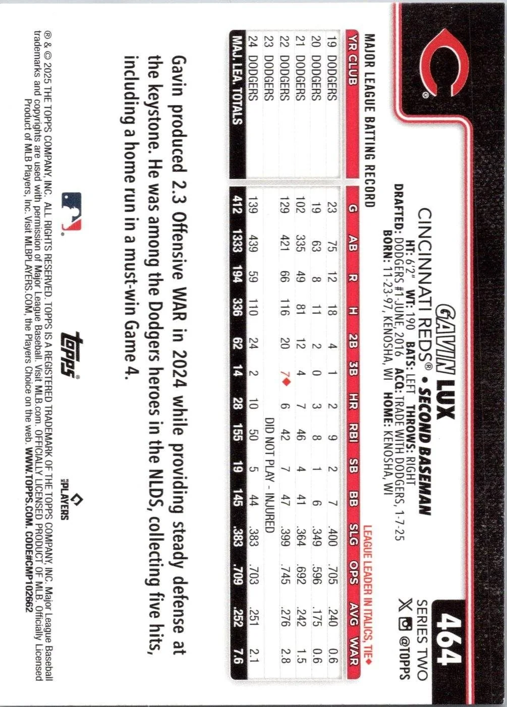This is a nice example of a 2025 Topps #464 Gavin Lux