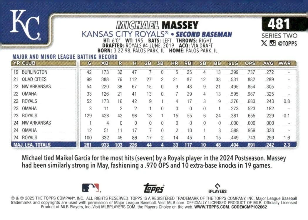 This is a nice example of a 2025 Topps #481 Michael Massey
