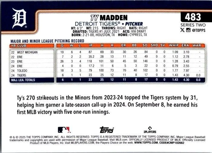 This is a nice example of a 2025 Topps #483 Ty Madden