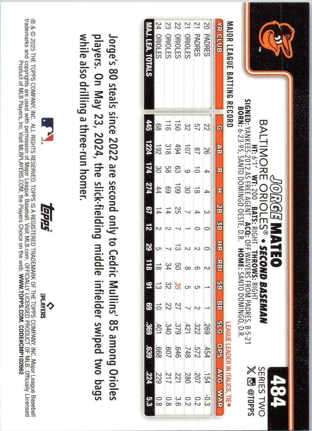 This is a nice example of a 2025 Topps #484 Jorge Mateo