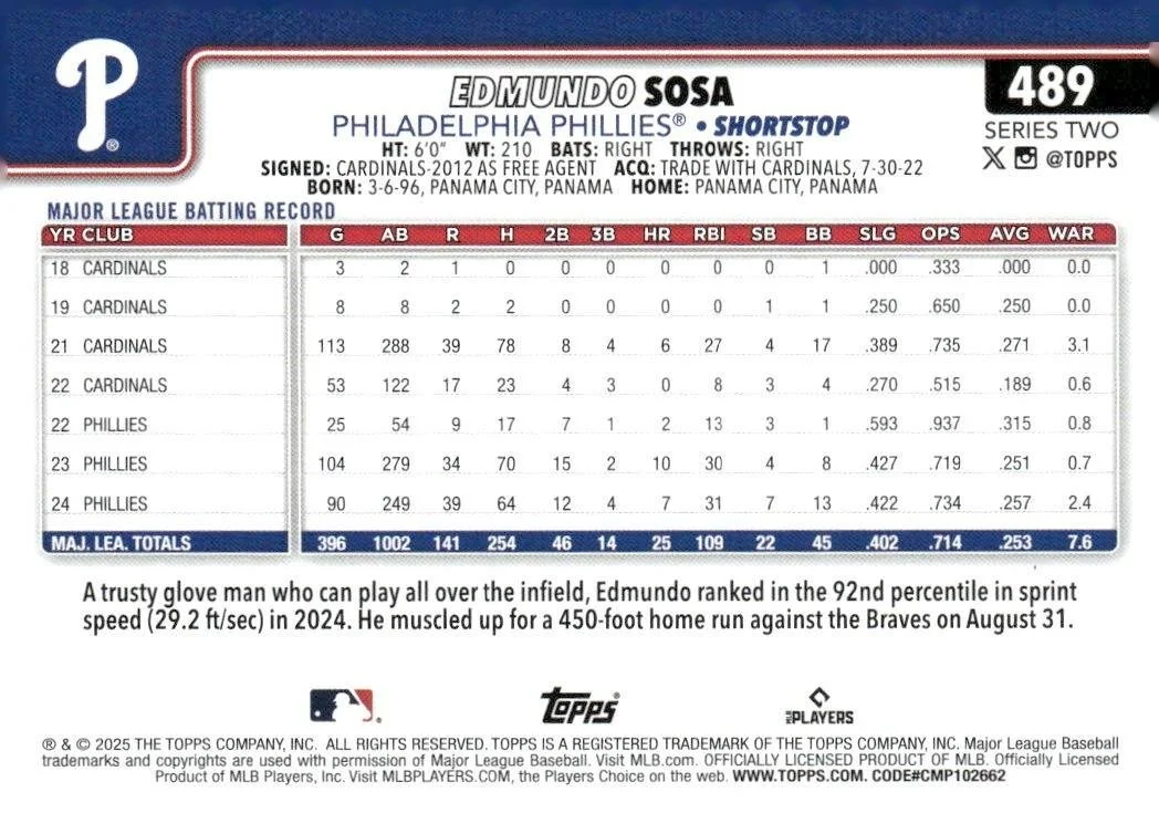 This is a nice example of a 2025 Topps #489 Edmundo Sosa