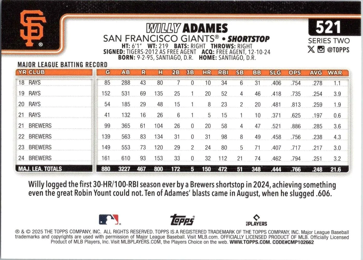This is a nice example of a 2025 Topps #521 Willy Adames