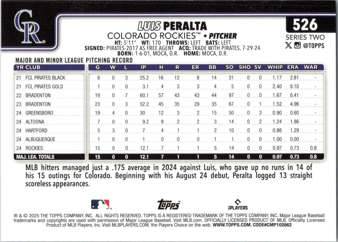 This is a nice example of a 2025 Topps #526 Luis Peralta