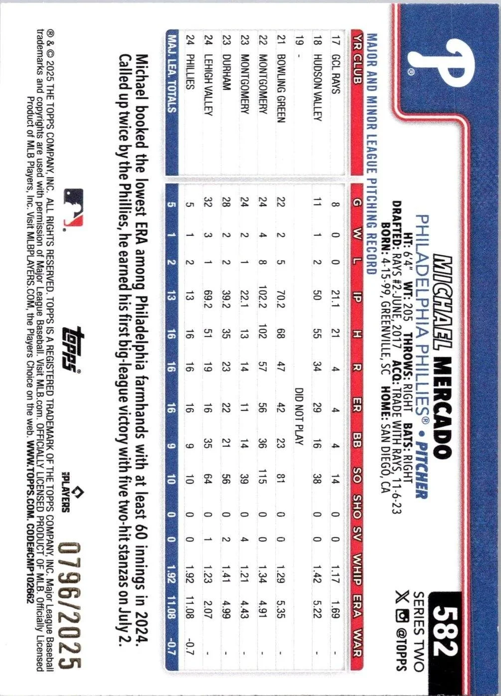 In 2025 Michael Mercado played for the Philadelphia Phillies.