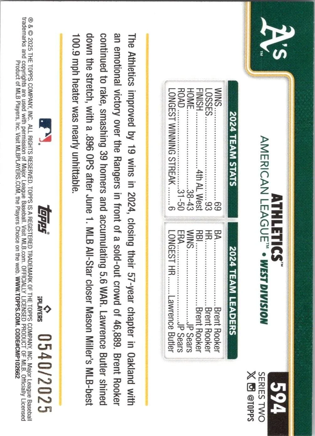 This is a nice example of a 2025 Topps #594 Athletics bicentennial