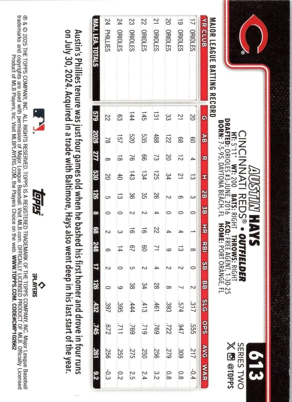This is a nice example of a 2025 Topps #613 Austin Hays