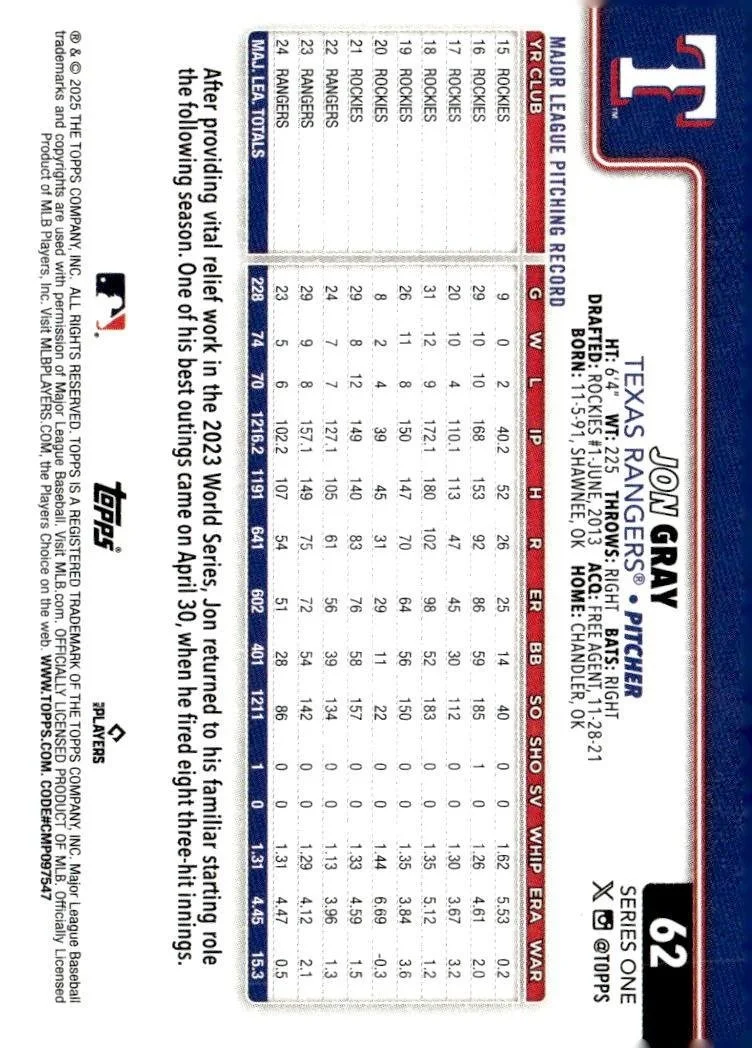 This is a nice example of a 2025 Topps #62 Jon Gray