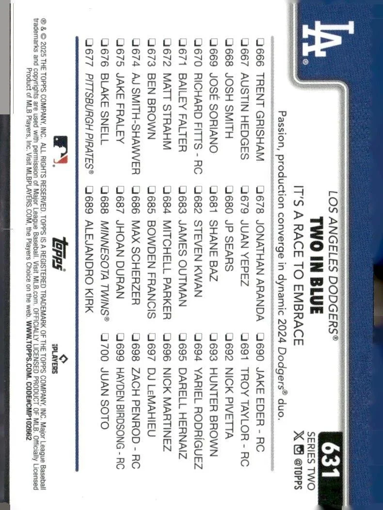 This is a nice example of a 2025 Topps #631 Two in Blue: It’s a Race to Embrace Topps Foil Pattern