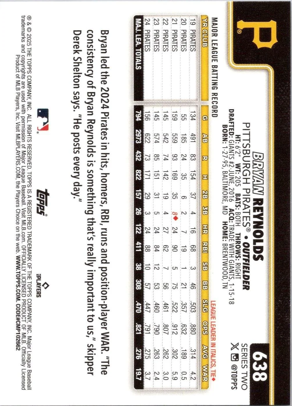 This is a nice example of a 2025 Topps #638 Bryan Reynolds