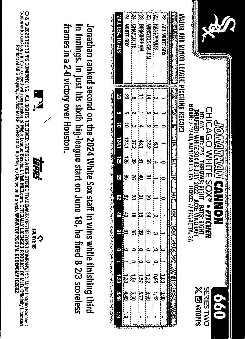 This is a nice example of a 2025 Topps #660 Jonathan Cannon