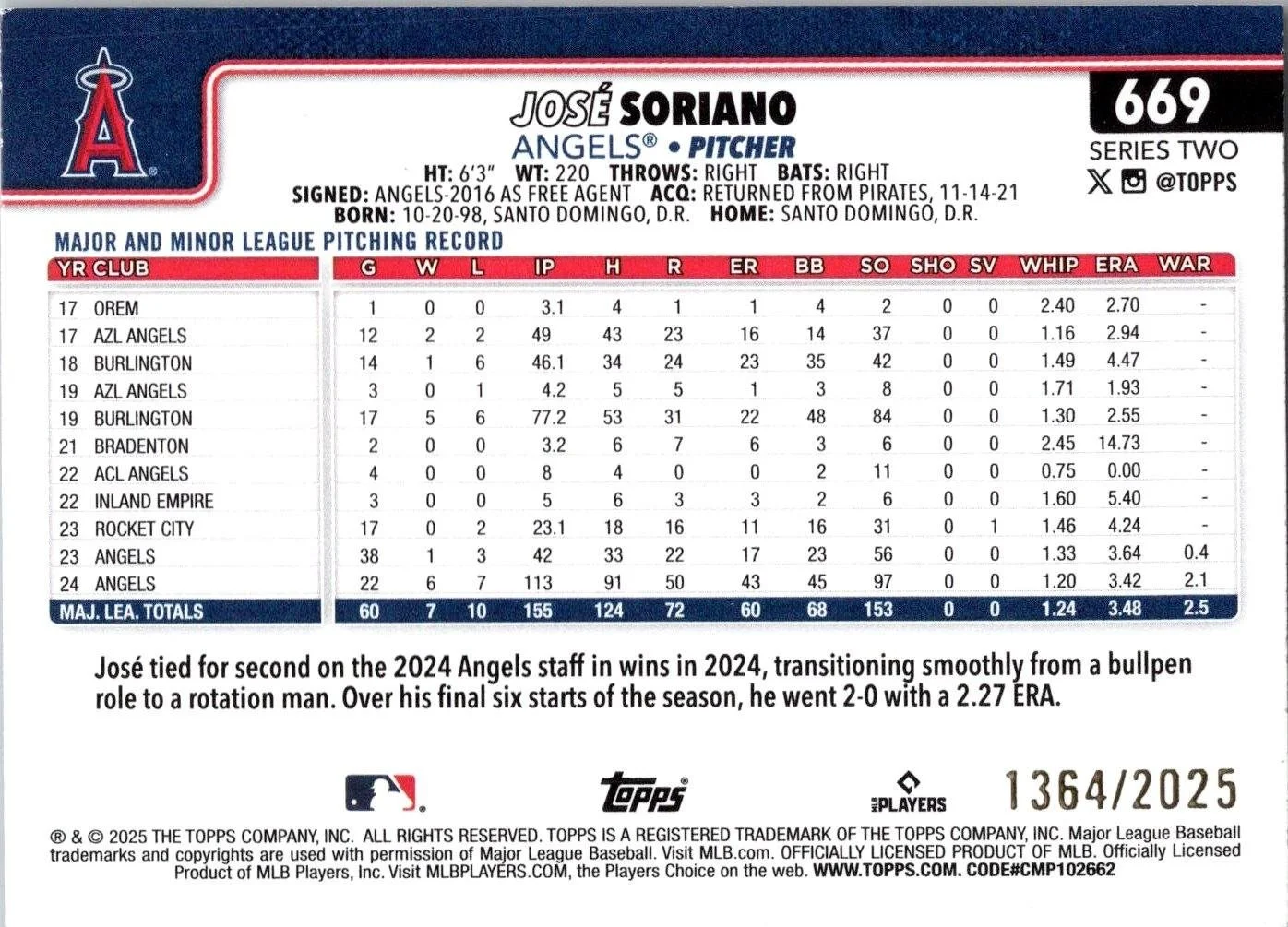 This is a nice example of a 2025 Topps #669 José Soriano Gold