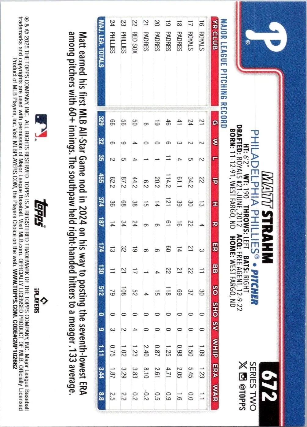 This is a nice example of a 2025 Topps #672 Matt Strahm