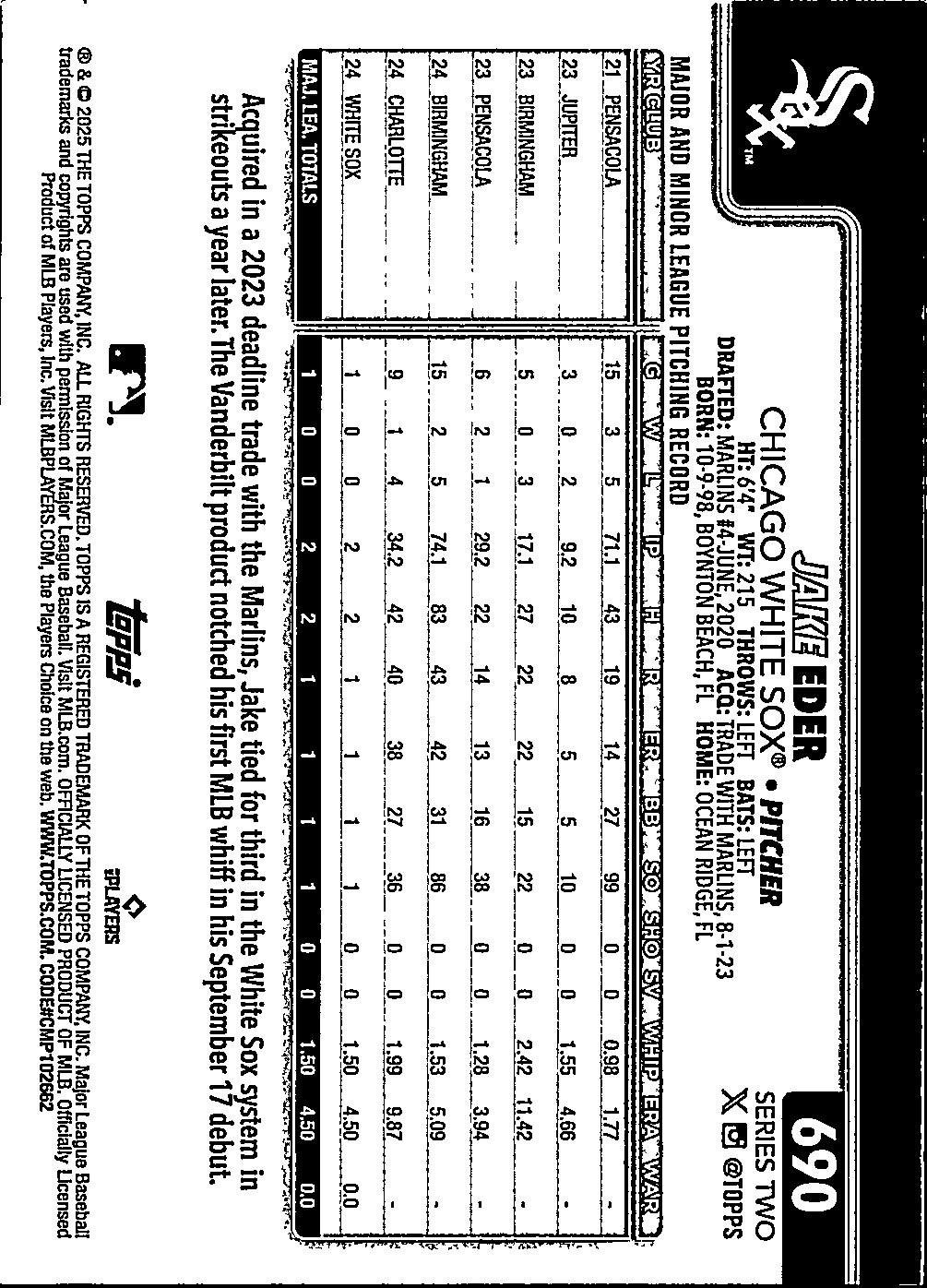 This is a nice example of a 2025 Topps #690 Jake Eder