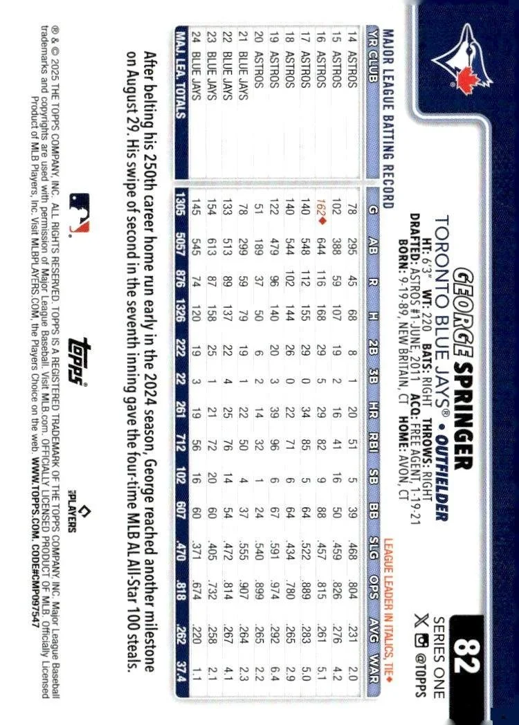 This is a nice example of a 2025 Topps #82 George Springer
