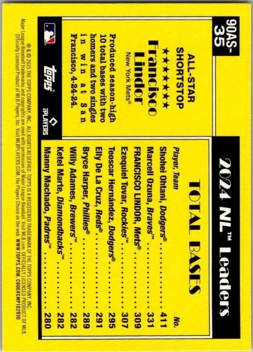 This is a nice example of a 2025 Topps #90AS-35b Francisco Lindor 1990 Topps Baseball 35th Anniversary All-Stars