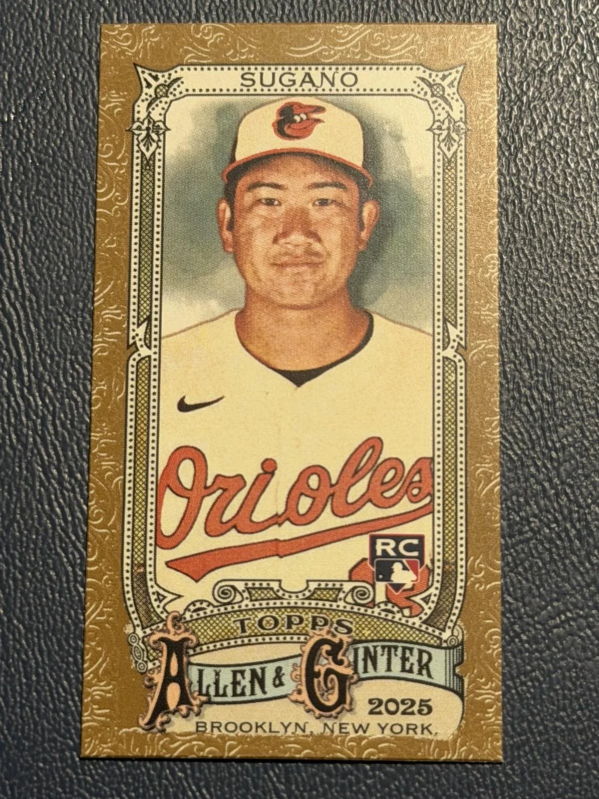 This is a nice example of a 2025 Topps Allen & Ginter #149 Tomoyuki Sugano Mini Gold Border