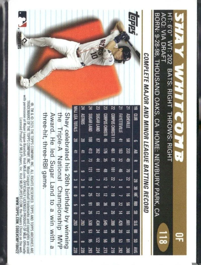 This is a nice example of a 2025 Topps Archives #118 Shay Whitcomb