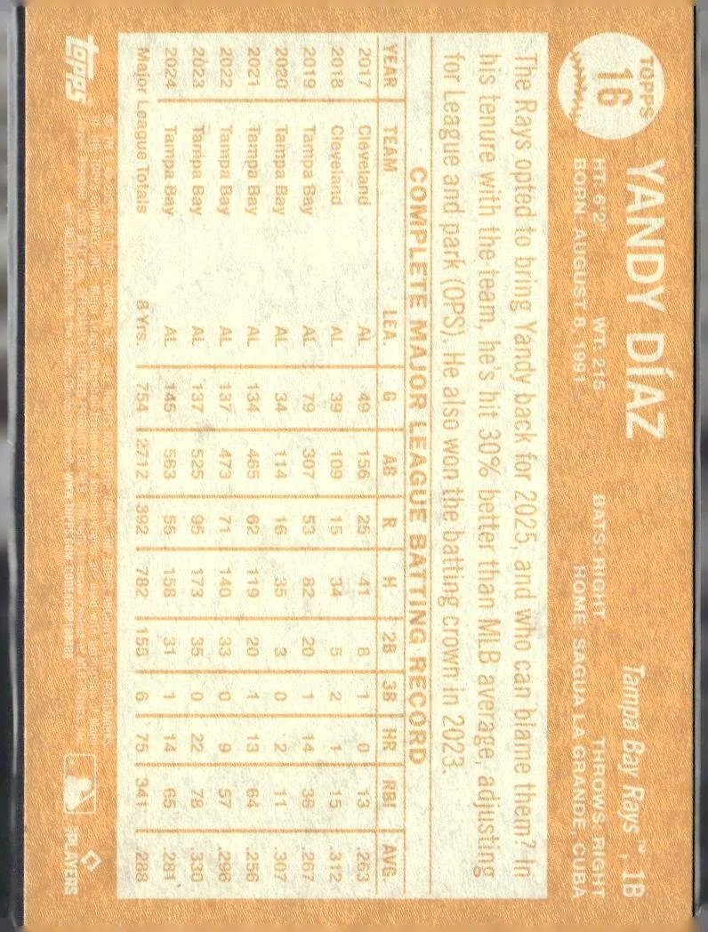 This is a nice example of a 2025 Topps Archives #16 Yandy Díaz
