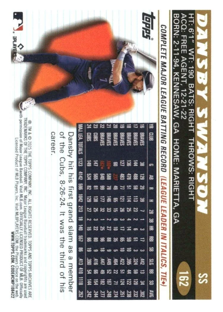 This is a nice example of a 2025 Topps Archives #162 Dansby Swanson
