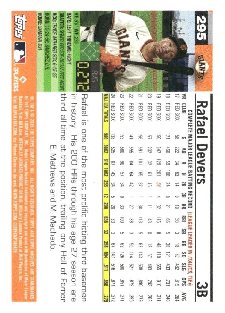 This is a nice example of a 2025 Topps Archives #295 Rafael Devers