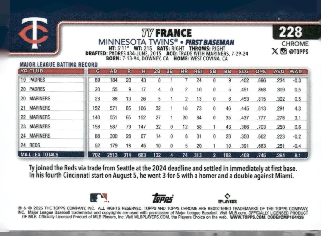 This is a nice example of a 2025 Topps Chrome #228 Ty France