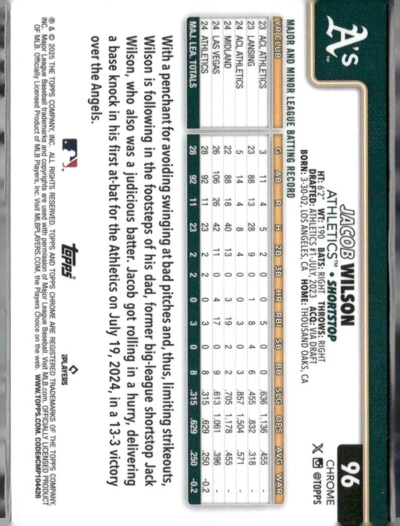 In 2025 Jacob Wilson played for the Athletics.
