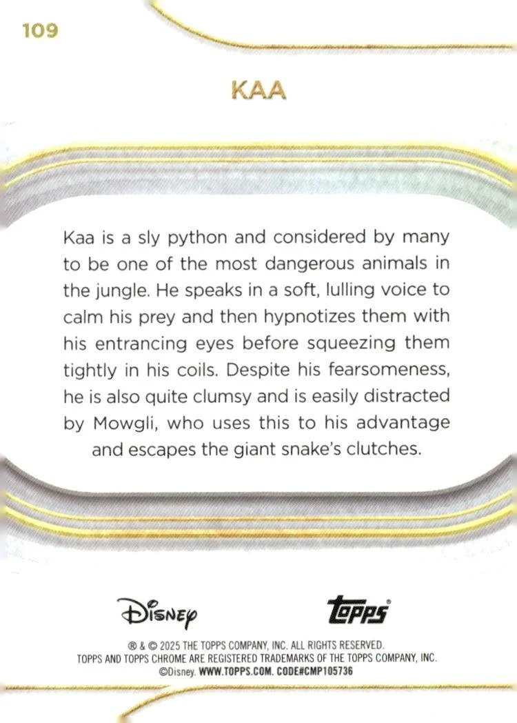 This is a nice example of a 2025 Topps Chrome Disney #109 Kaa