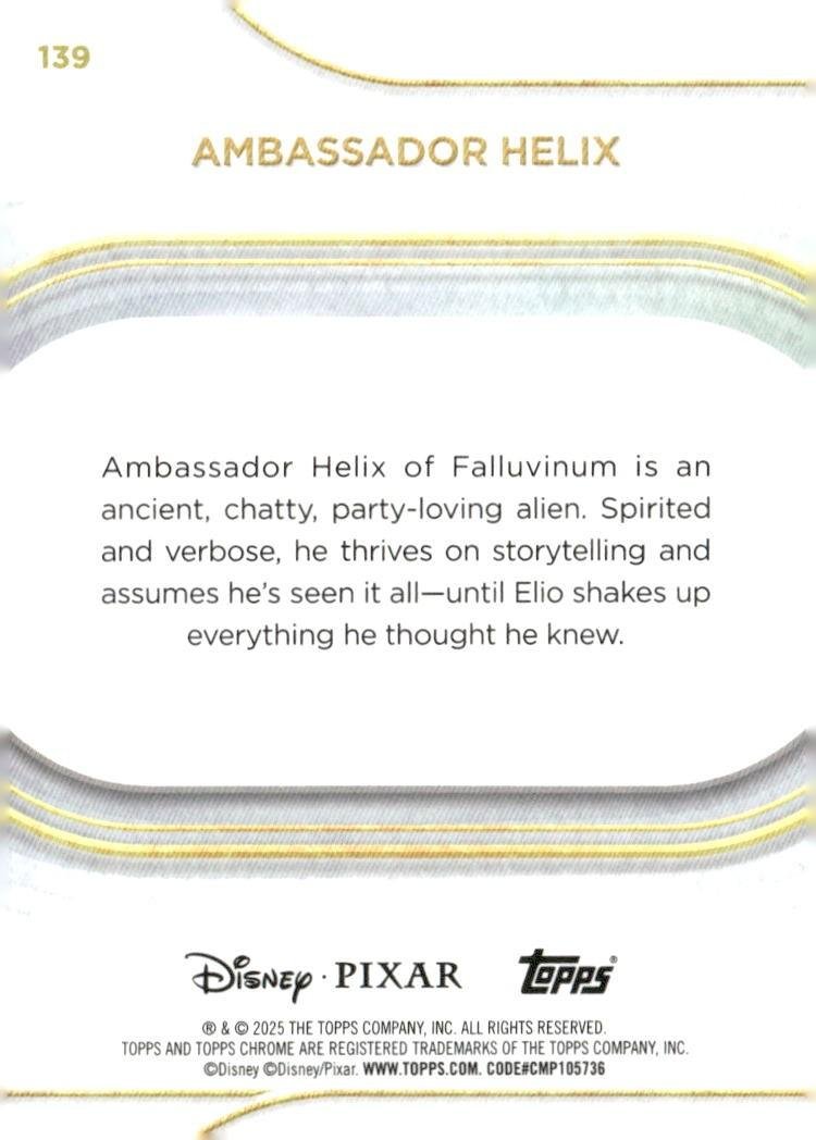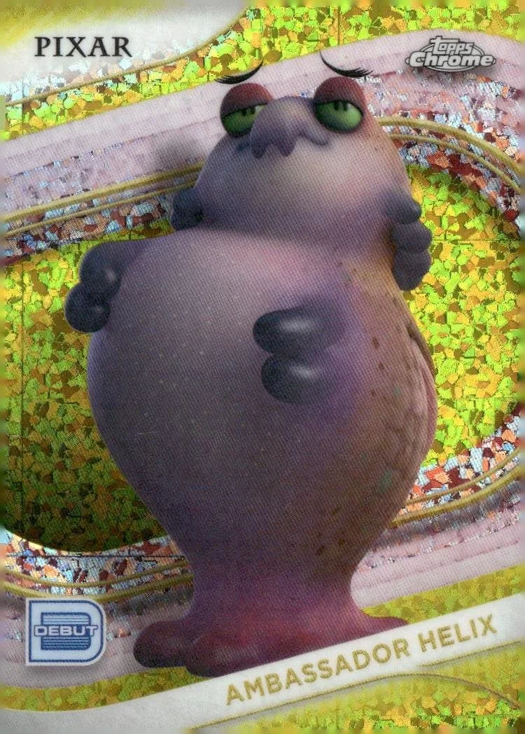 This is a nice example of a 2025 Topps Chrome Disney #139 Ambassador Helix Yellow Mini-Diamonds