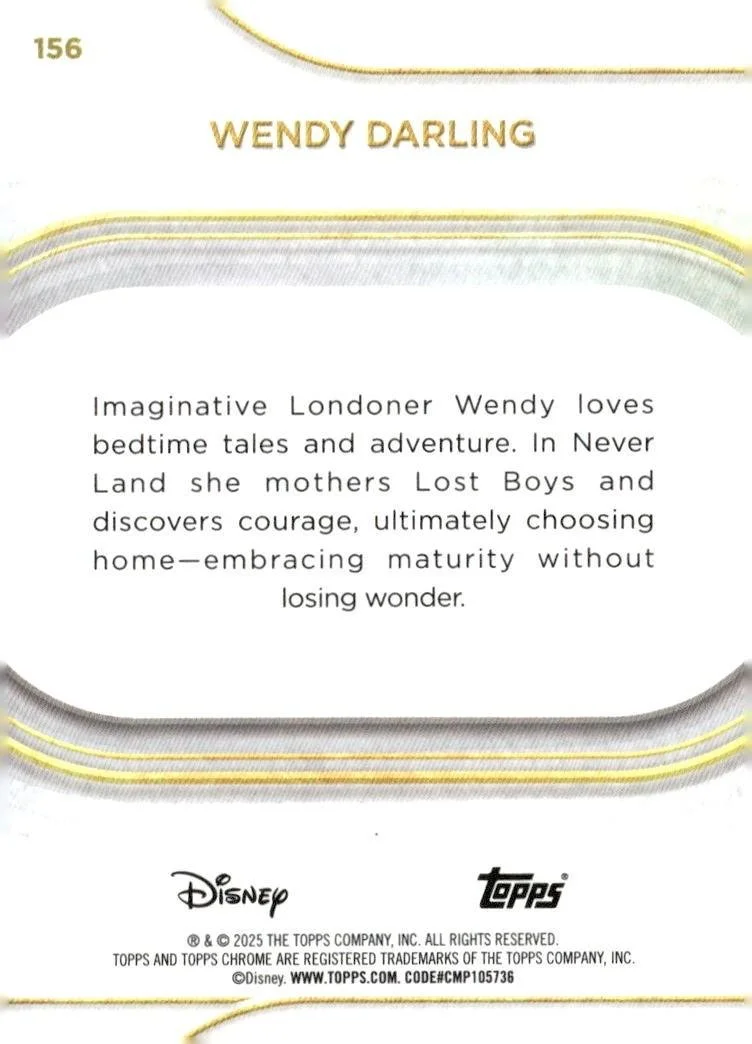This is a nice example of a 2025 Topps Chrome Disney #156 Wendy Darling