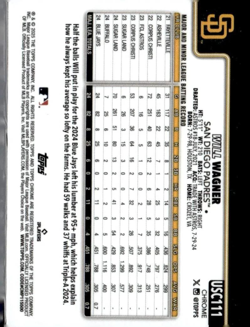 This is a nice example of a 2025 Topps Chrome Update #USC111 Will Wagner